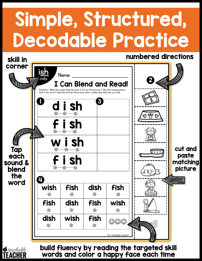 - 4-5 words per skill for your students to blend and read.