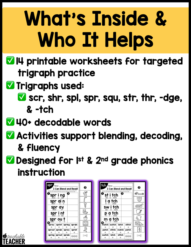 By practicing blending and reading trigraphs in a consistent and systematic way, your students will be blending reading words with trigraphs independently in no time!