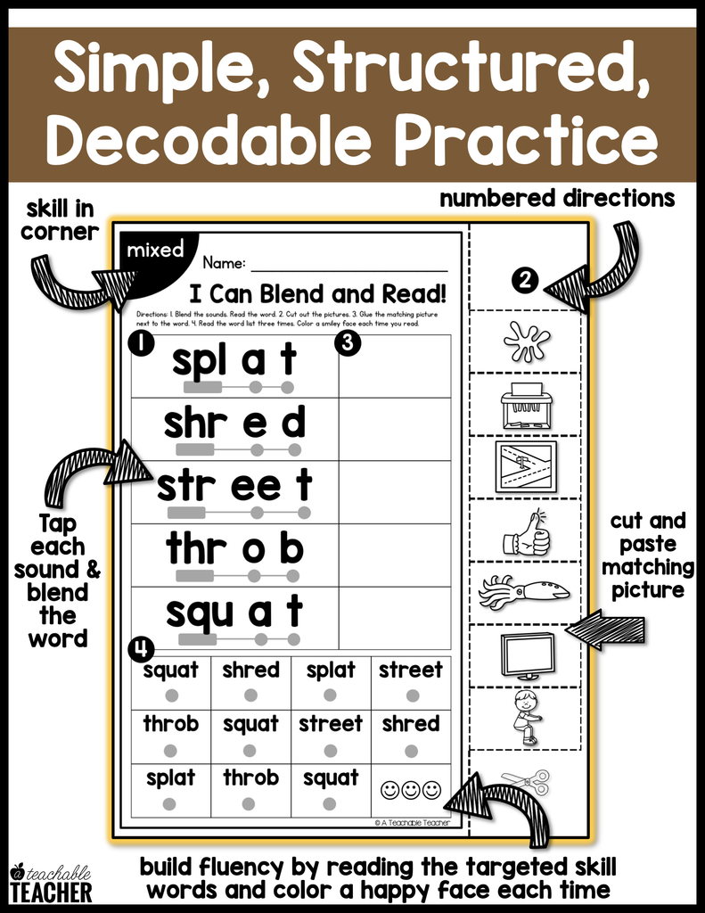 - Please note that some of the words used in this resource contain blends, long vowel teams, silent e, and/or r-controlled vowels.