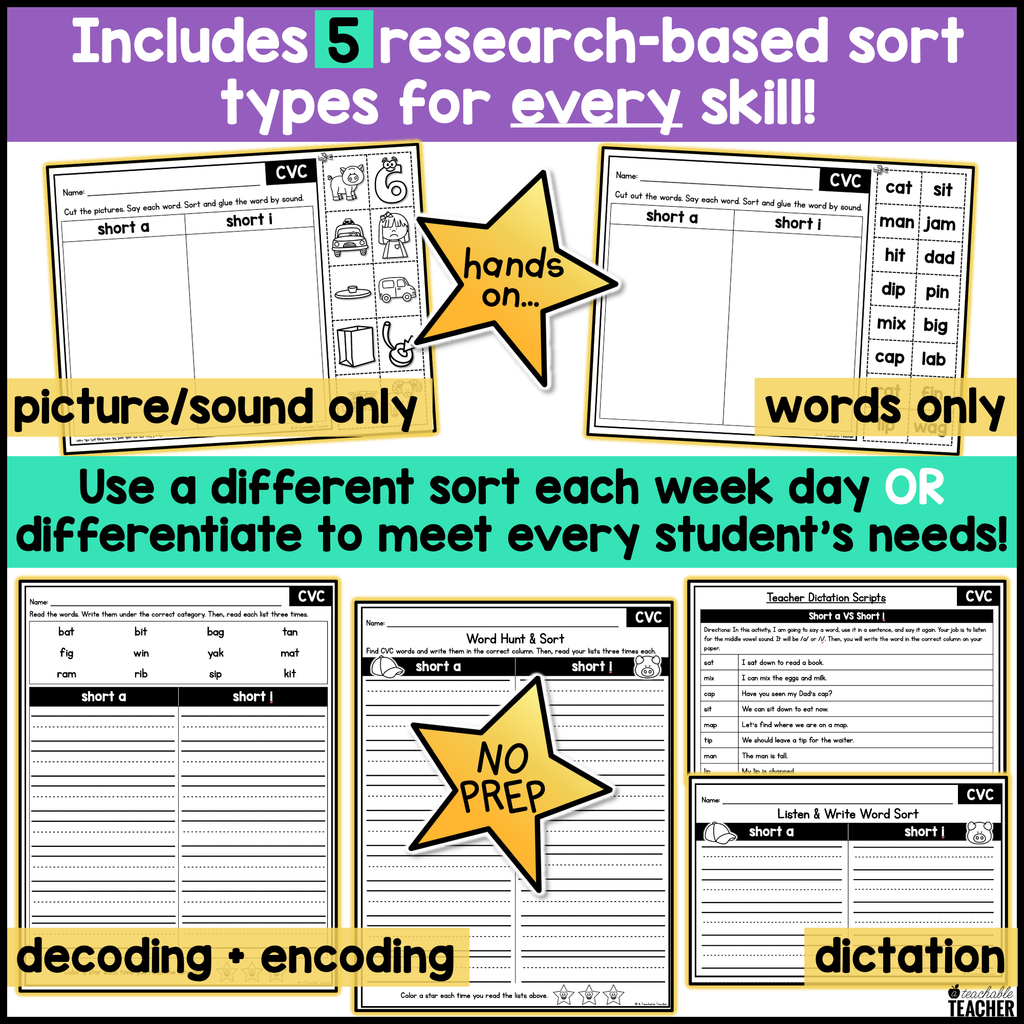 Use one sort each day to reinforce a single skill