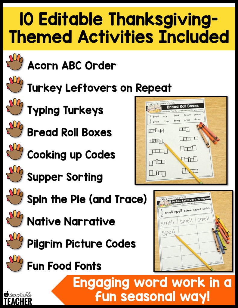 Just download, type, and print your customized Thanksgiving activities!