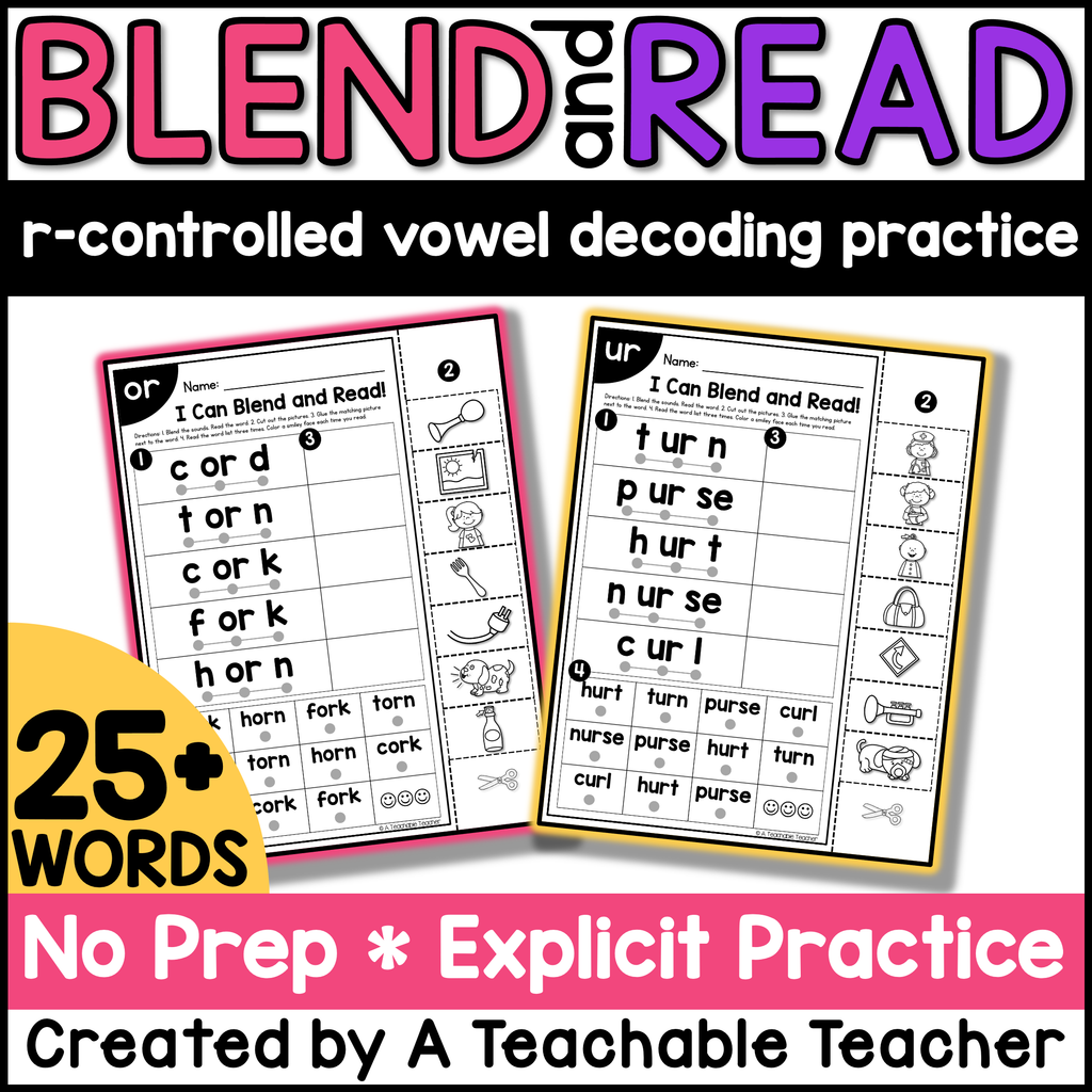 R-Controlled Vowels, Bossy R…whatever you call it! Do your students struggle to blend r-controlled vowel words and therefore read r-controlled vowel words? These blend & read R controlled vowel worksheets are exactly what you and your students need to start reading R-controlled vowel words fluently!