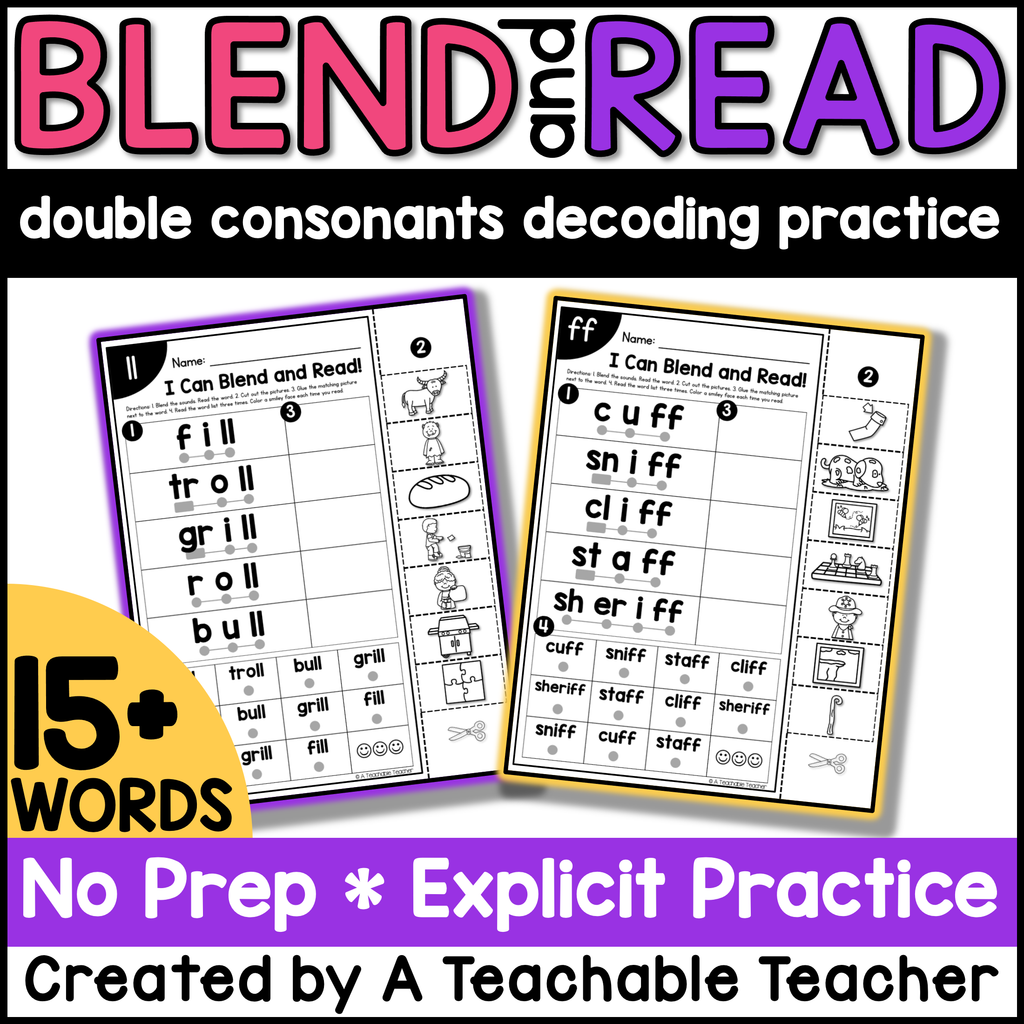 Oh, double consonants! Do your students struggle to blend word with double consonants and therefore read words with double consonants? These blend & read double consonant worksheets are exactly what you and your students need to start reading words with double consonants fluently!