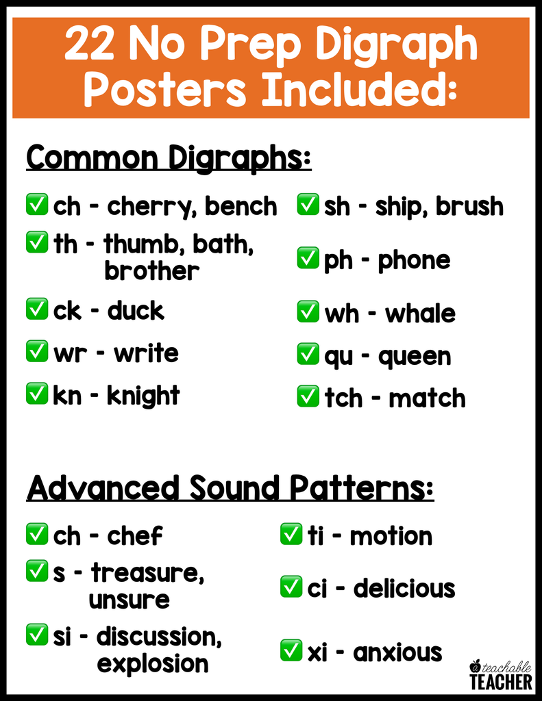 Phonics Digraph Poster Features