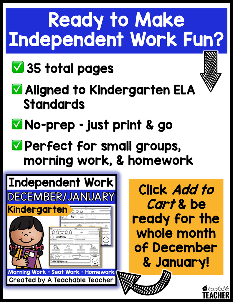 The wide variety of ELA skills included in this packet make it perfect for Kindergarteners (or first grade review, depending on your students).