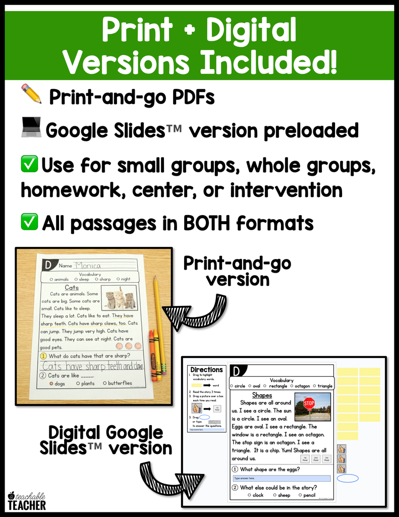 ***I have now added DIGITAL versions of every single passage! These passages have been formatted for use with Google Classroom™️. The passages are the same, but students interact with the passage through drag-and-drop features as well as text boxes in reformatted Google Slides™️.***