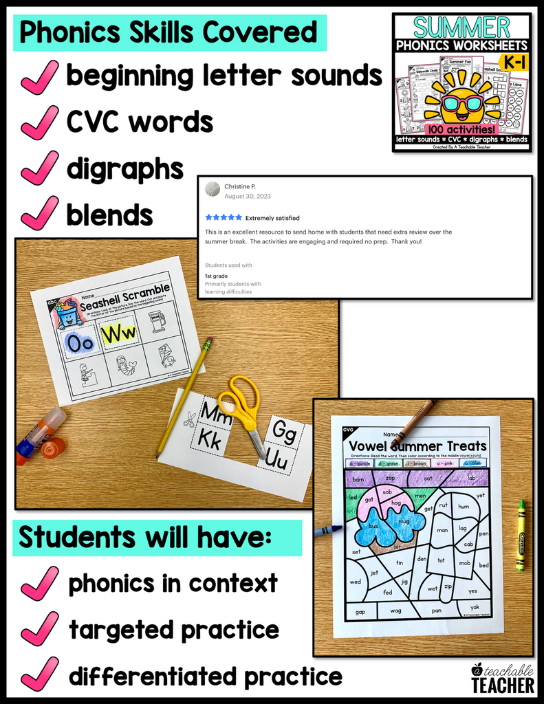 This targeted Summer Phonics Bundle covers the following skills: